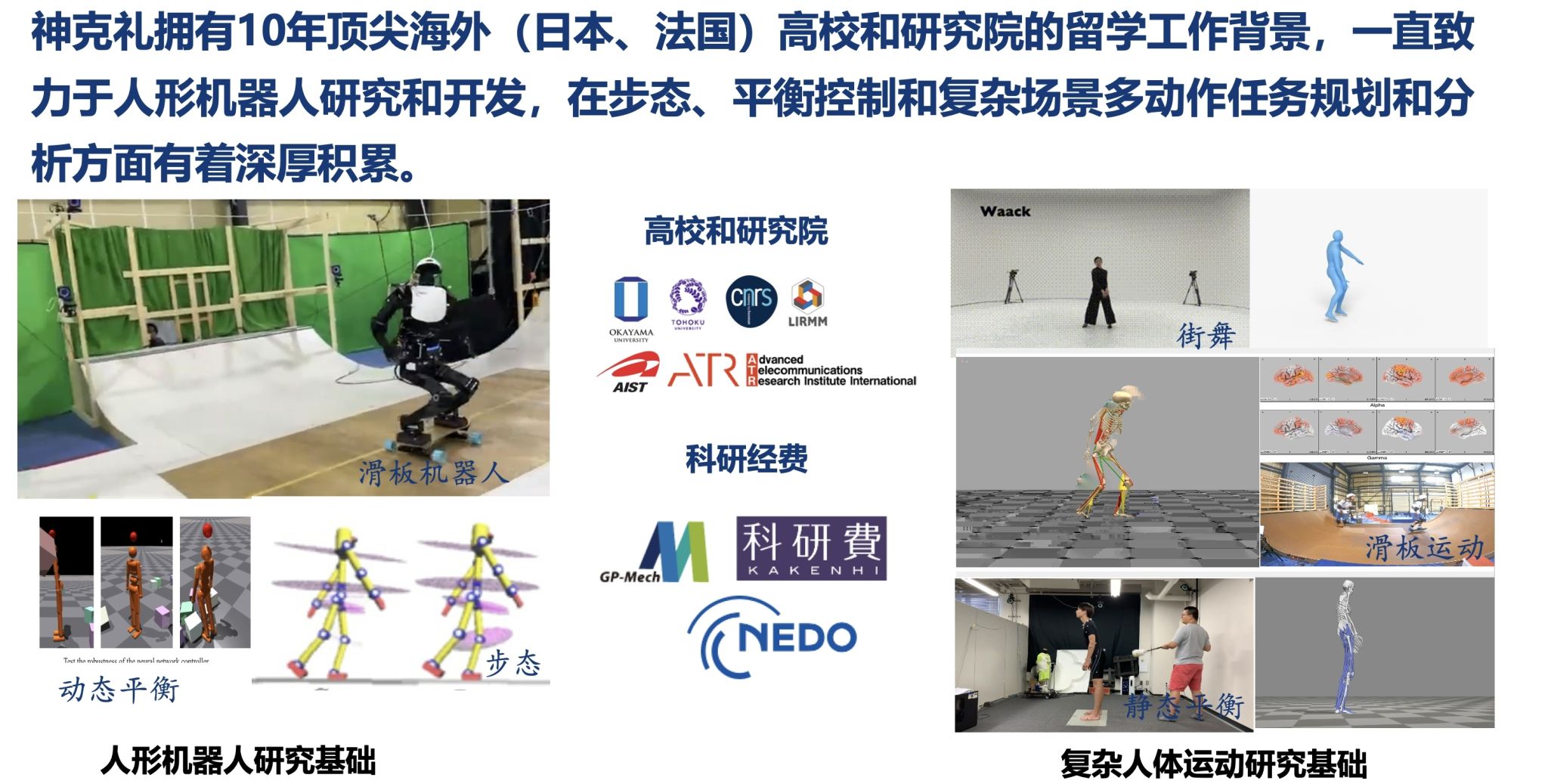2015年至2025年,在日本留学与工作,博士毕业于日本东北大学神经机器人学实验室。期间,入选了日本东北大学顶尖国际机械人才计划,并以访问研究员身份前往法国CNRS-LIRMM开展机器人合作研究。博士后阶段,任职于日本国立产业技术综合研究所(AIST)人机交互-脑数理课题组,同时兼任国际电气通信基础技术研究所(ATR)脑信息解析实验室合作研究员。期间,主持了日本学术振兴会(JSPS)科研启动基金项目;作为技术负责人参与了日本国家机器人五年重点研发项目的两项子课题,相关研究成果已被Nature、美国洛杉矶时报和日本产经新闻等权威媒体报道。已发表19篇论文,其中包含中科院一区顶刊和领域内顶会的文章。在机器人学、生物力学、机器学习、深度强化学习和多模态数据融合领域,拥有深厚的学术积累和丰硕的科研成果,并且在海外顶尖科研机构积累了丰富的科研项目与合作经验。